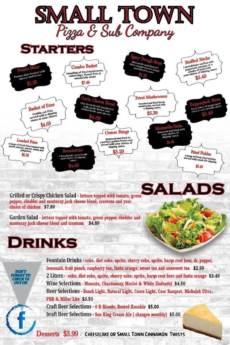 At Small Town Pizza & Sub Co., you'll find a menu packed with irresistible options that bring the heart of Trafalgar to your table. The Small Town Pizza & Sub Co. Menu features a variety of mouthwatering pizzas and subs, each crafted with fresh ingredients and a passion for flavor. Whether you're in the mood for a classic cheese pizza, a zesty specialty pie, or a hearty sub stacked high with savory meats and veggies, there's something for everyone. The cozy, friendly atmosphere makes it the perfect spot to enjoy a casual meal with friends or family. From the first bite to the last, Small Town Pizza & Sub Co. offers delicious dishes that hit the spot every time.